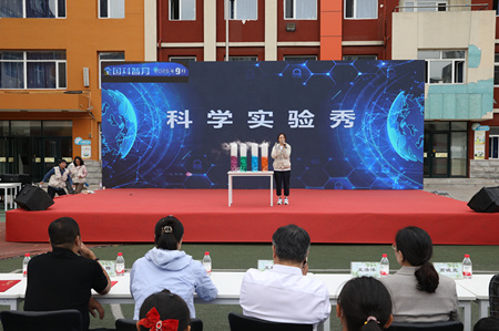随后,对在第40届辽宁省青少年科技创新大赛中获奖的学生、科技辅导员及科学教育工作先进个人进行表彰。他们的成果涵盖机器人设计、环保科技等领域,展现了青少年将创意转化为实践的创新能力。最后,一场互动科学实验秀将活动推向高潮。在“肺活量大挑战”中,学生们用2米长的塑料袋验证气流原理,发现“远吹比近吹更易充满”的奇妙现象;干冰实验中,七彩液体遇冷腾起缭绕白雾,如仙境瀑布倾泻,零下78℃的低温让气泡“跳舞”、白雾成纱,揭开物质变化的魔法。学生们亲手操作、观察实践,在欢笑与惊叹中领悟科学原理。